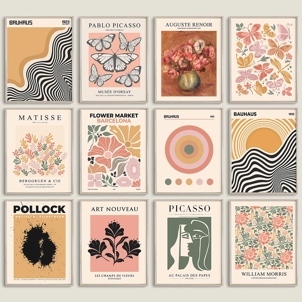 Conjunto de exposição vintage de 12 impressões, arte de parede, mercado de flores, matisse bauhaus, pôster abstrato, pintura em tela, decoração nórdica de casa