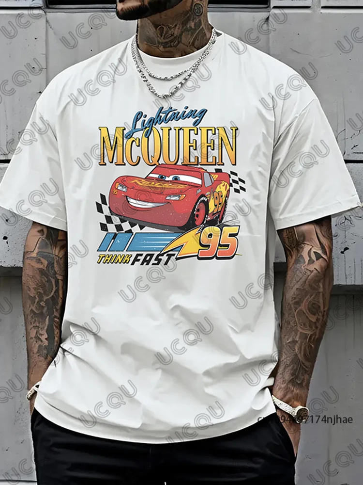 Relâmpago McQueen Cars 95 Camiseta com estampa gráfica para homens verão manga curta camisetas de algodão casuais esportes grandes casais tops