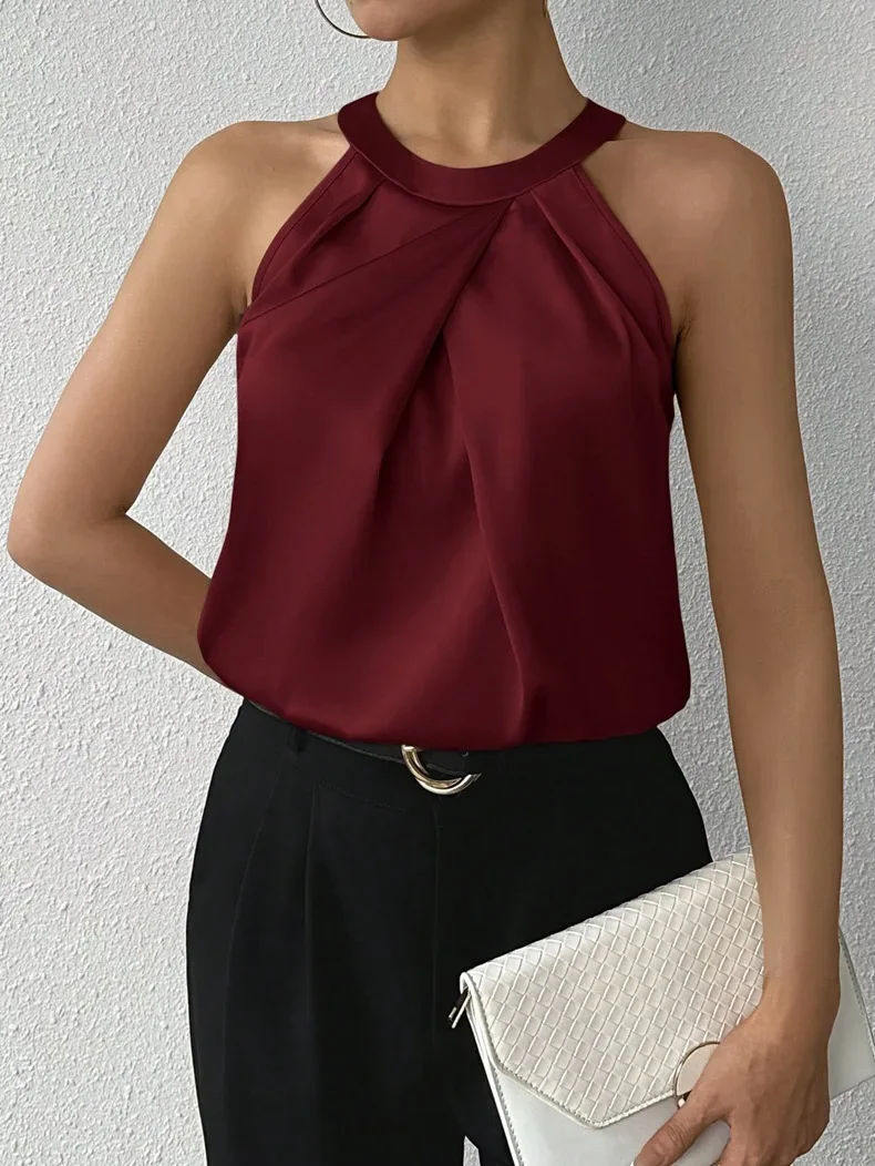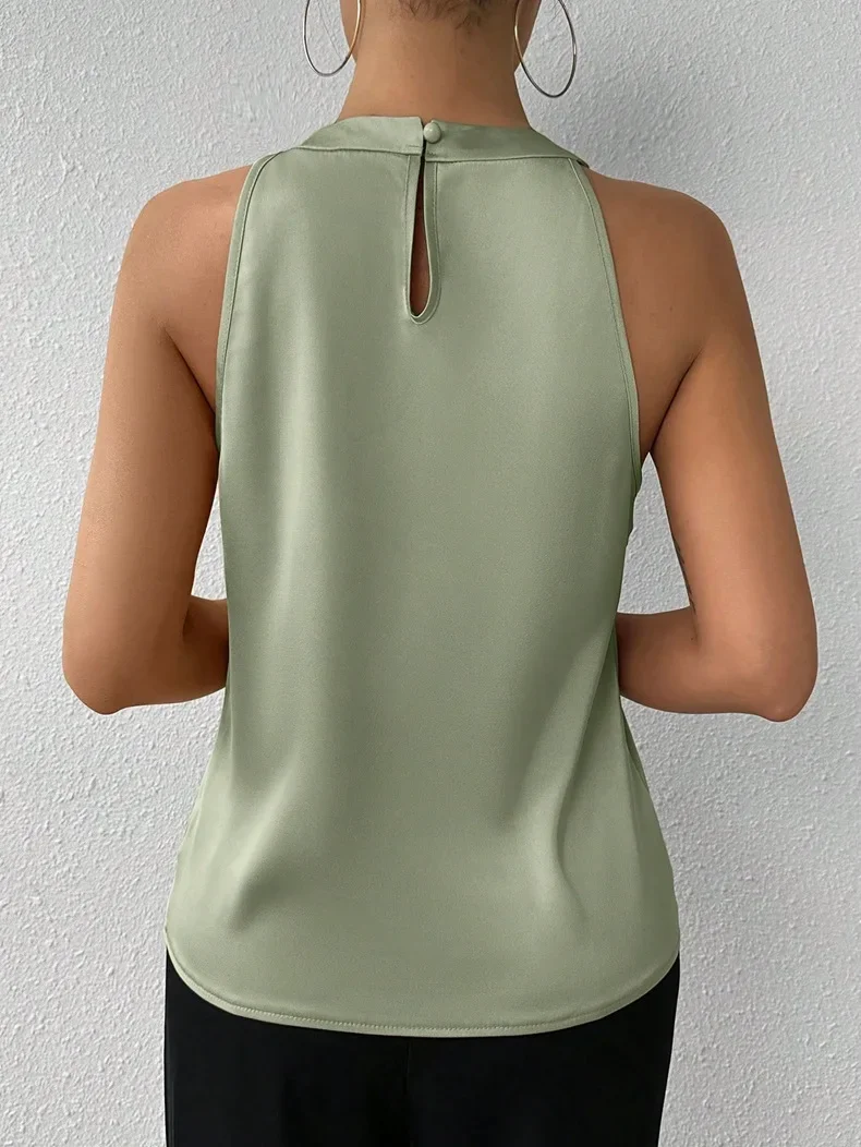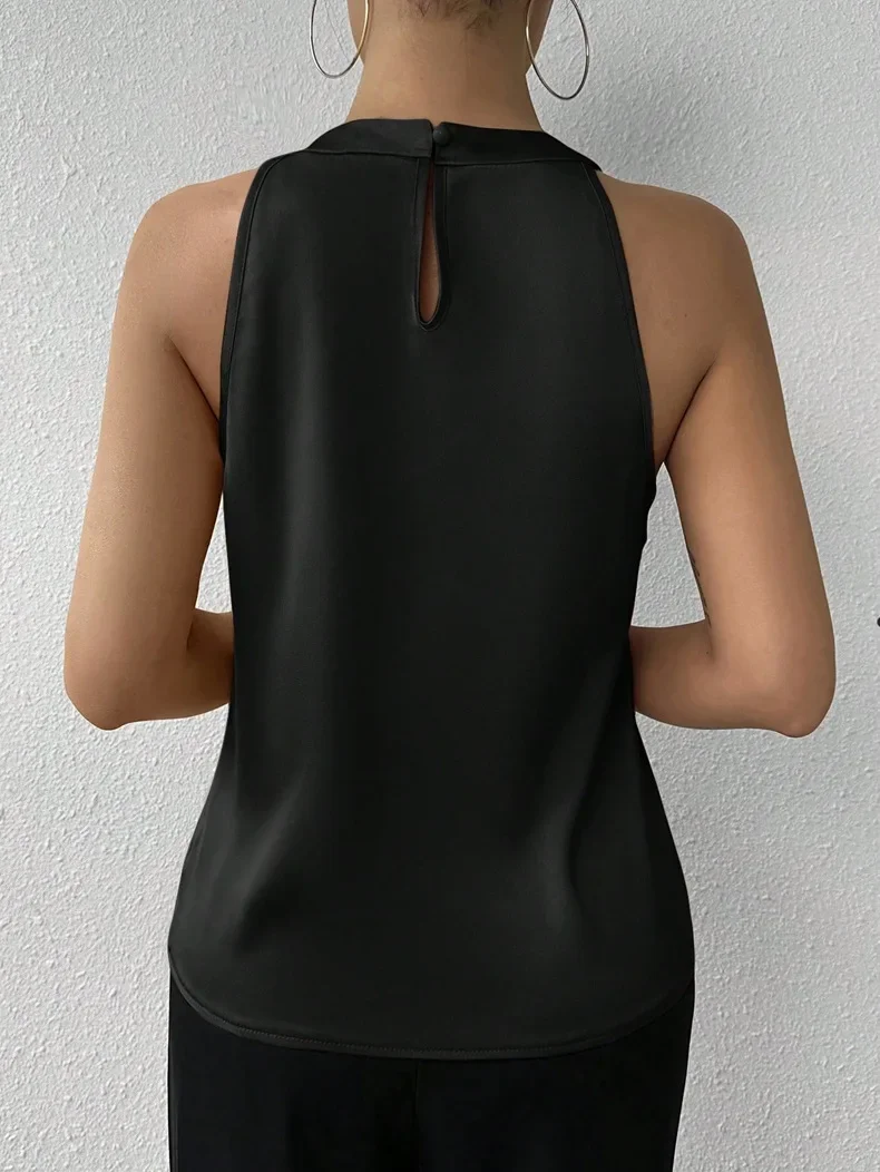 • Design sem manga:Esta camisa sem mangas é ideal para os dias quentes de verão, proporcionando conforto sem comprometer o estilo.