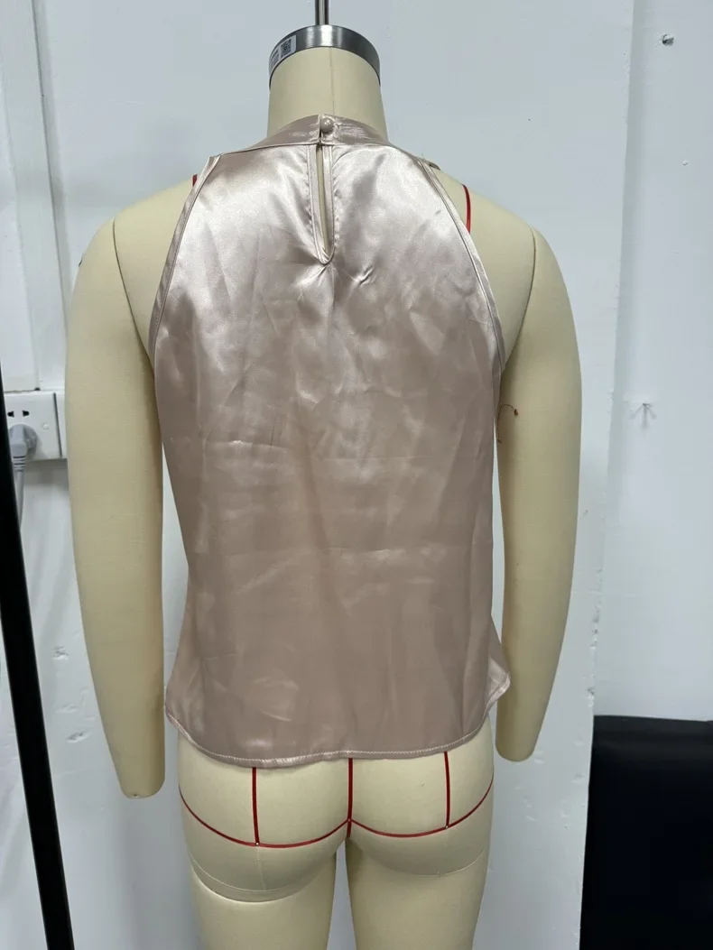 • Tecido Cetim de Alta Qualidade:Confeccionada em cetim premium, esta camisa oferece um toque luxuoso e brilho elegante, perfeita para a elegância do verão.