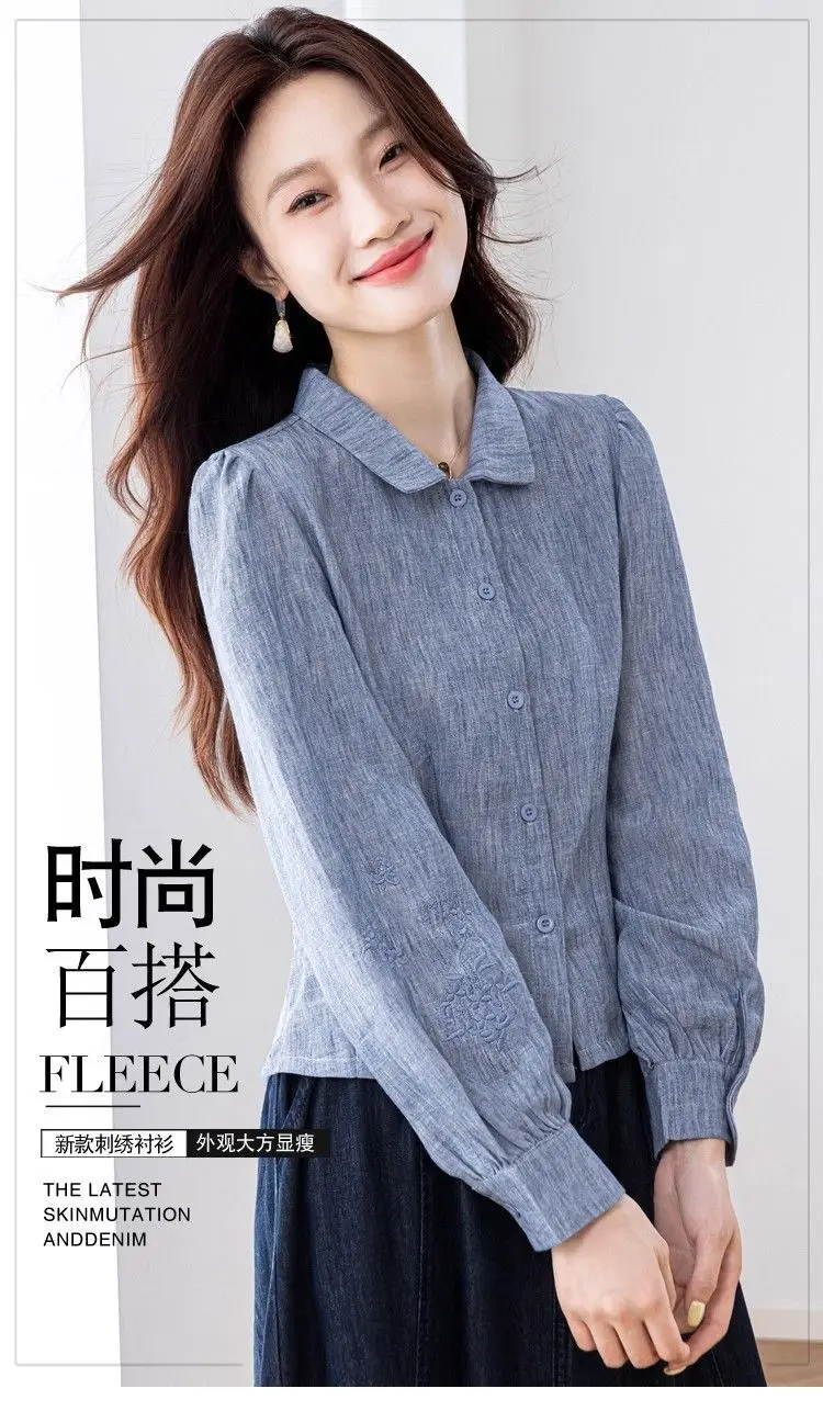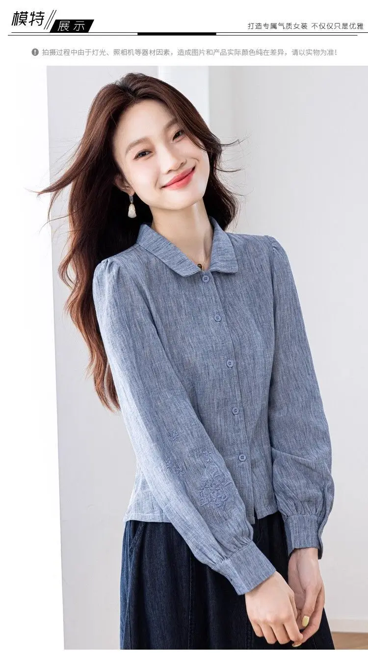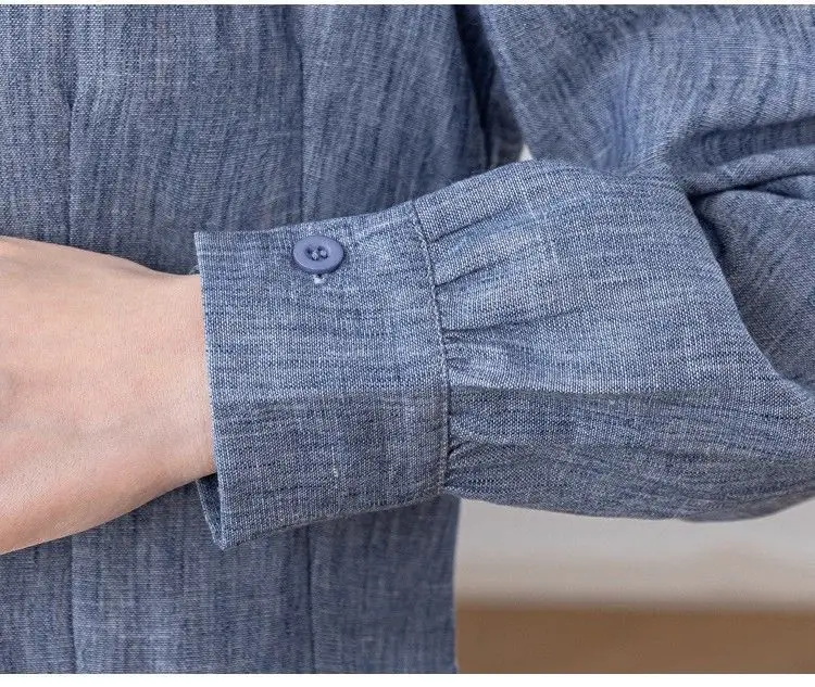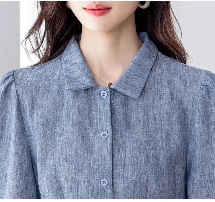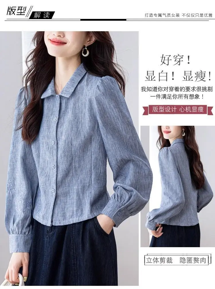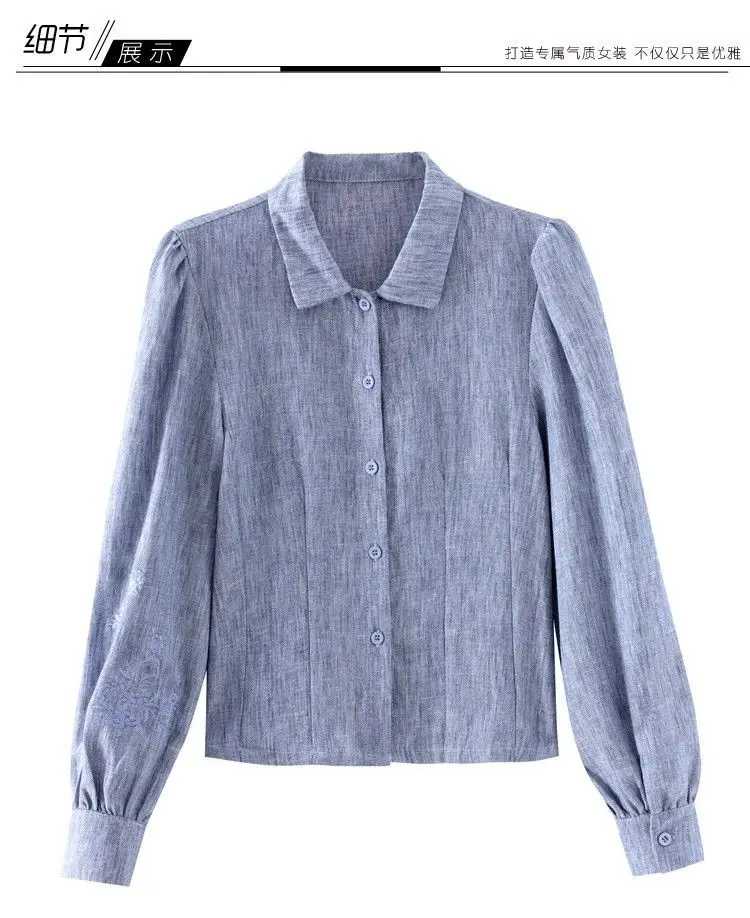 Camisa de cor sólida elegante e elegante feminina versátil botão lanterna manga comprida lapela topo